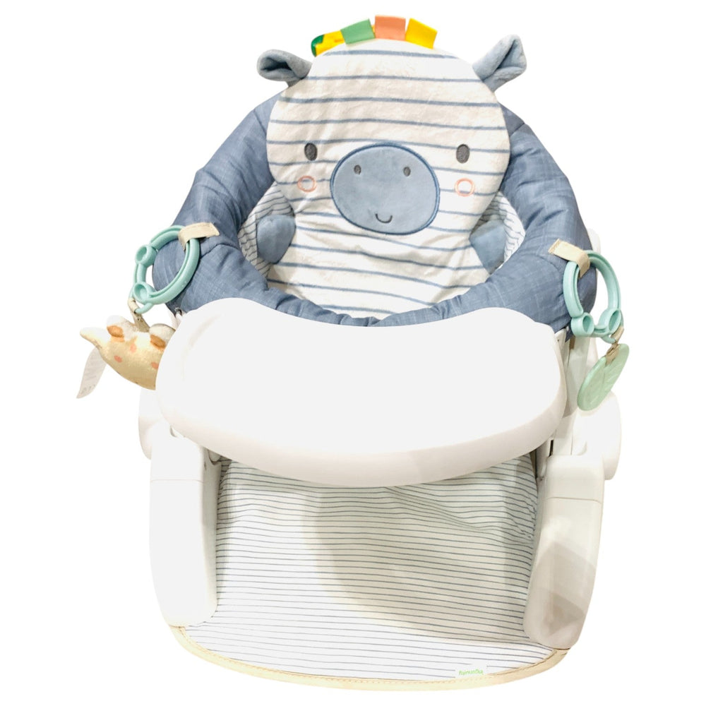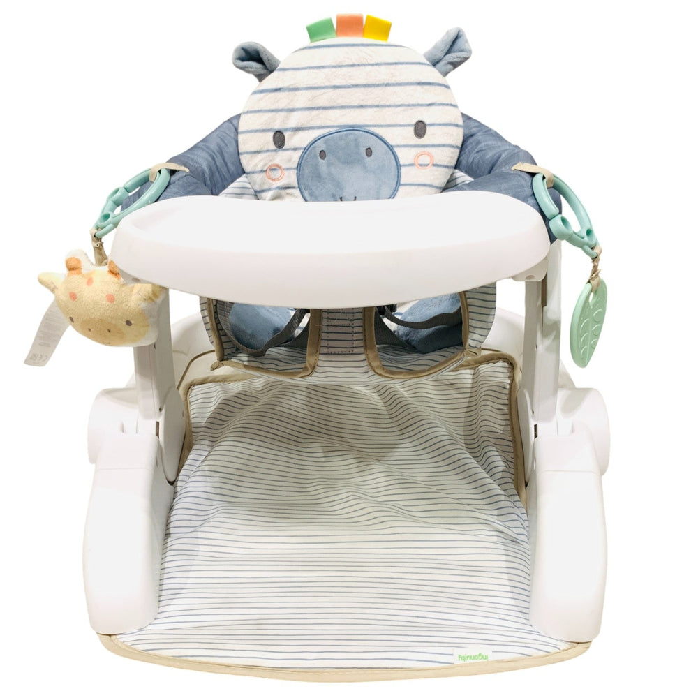 The Ingenuity Prop Spot Learn-to-Sit Floor Seat – Casi grows with your baby in three developmental positions, helping them play, explore, and engage with their surroundings. The padded seat back features the adorable Casi the zebra, and the removable seat insert doubles as a tummy time mat with crinkle, two toys, and three colorful tags. The tray includes two linkable toys for extra engagement. Easy-to-clean and supportive, this floor seat helps early sitters stay comfortable and safely stationary while freeing your hands.