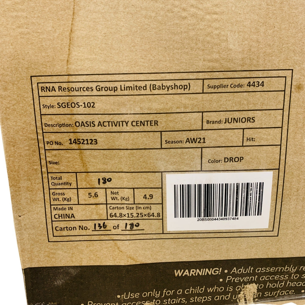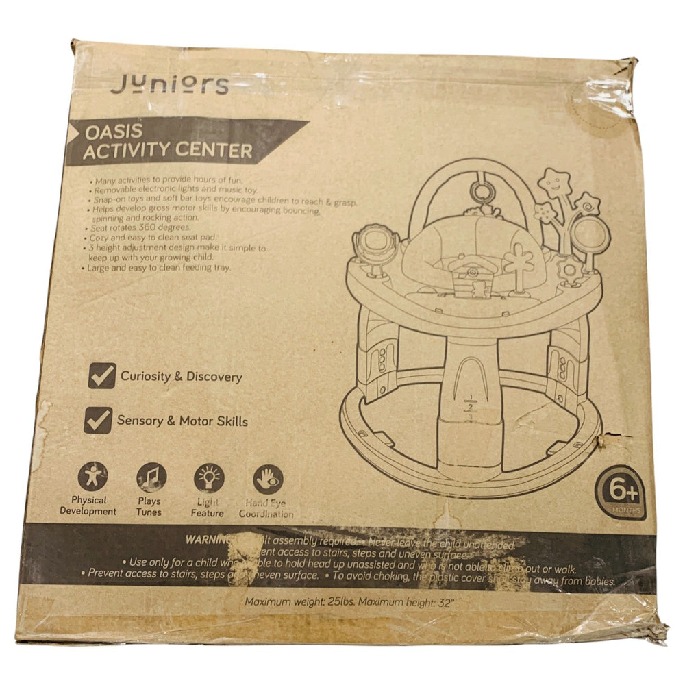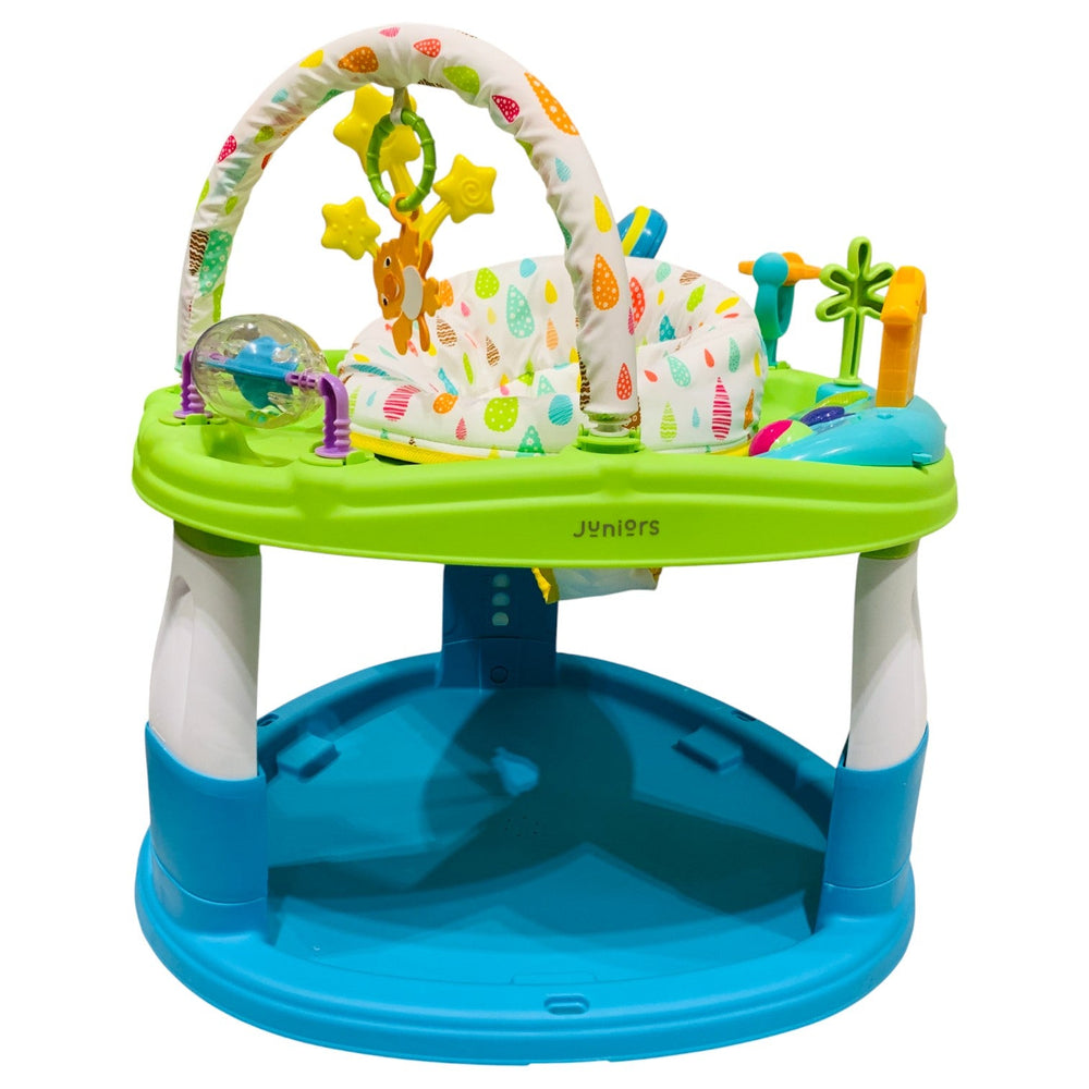 The Juniors Oasis Activity Centre keeps your baby entertained while providing a safe and comfortable space to play. Featuring three adjustable height settings, it can grow with your baby for optimal convenience. The activity centre also includes a practical feeding tray that is easy to clean and use, making mealtime simple and stress-free.