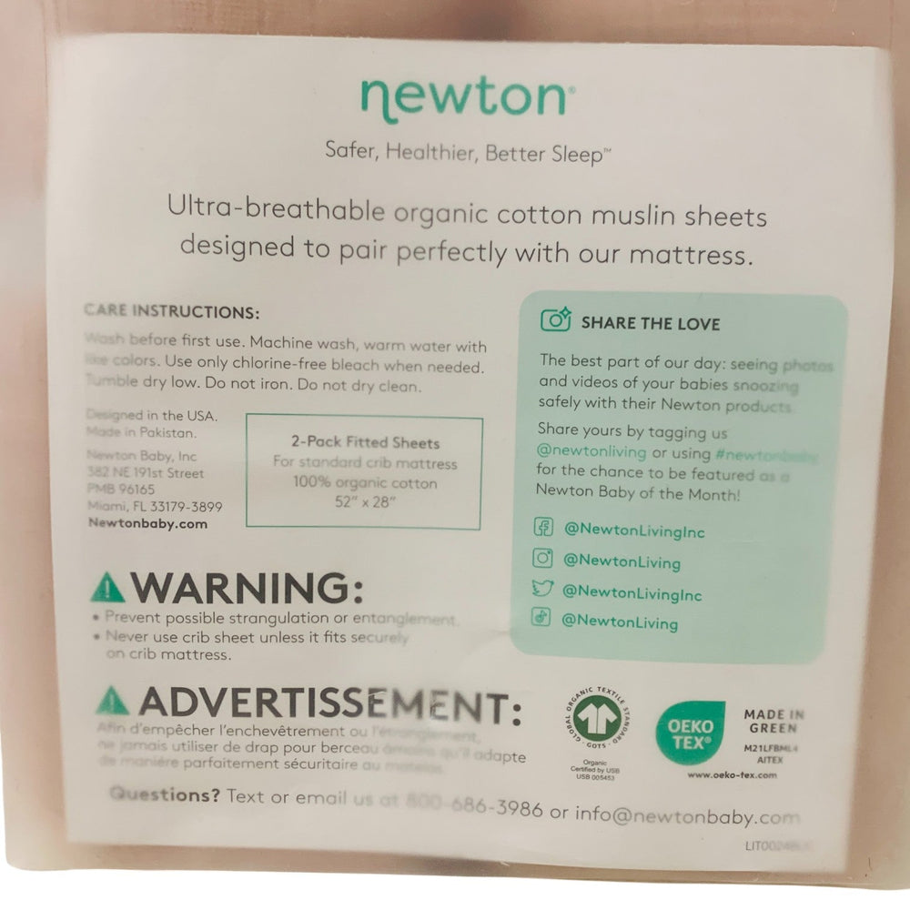 The Newton Baby Organic Cotton Sheets offer ultra-breathable, soft, and safe comfort for your baby’s crib. Made from 100% organic cotton muslin, these sheets provide superior airflow to keep your little one cool and cozy. Designed with all-around elastic, they fit any standard crib mattress snugly and securely. Hypoallergenic and GOTS-certified, they are gentle on delicate skin and produced with strict environmental standards. Pre-shrunk and machine washable, these durable sheets make maintaining a clean and healthy sleep space easy and convenient.