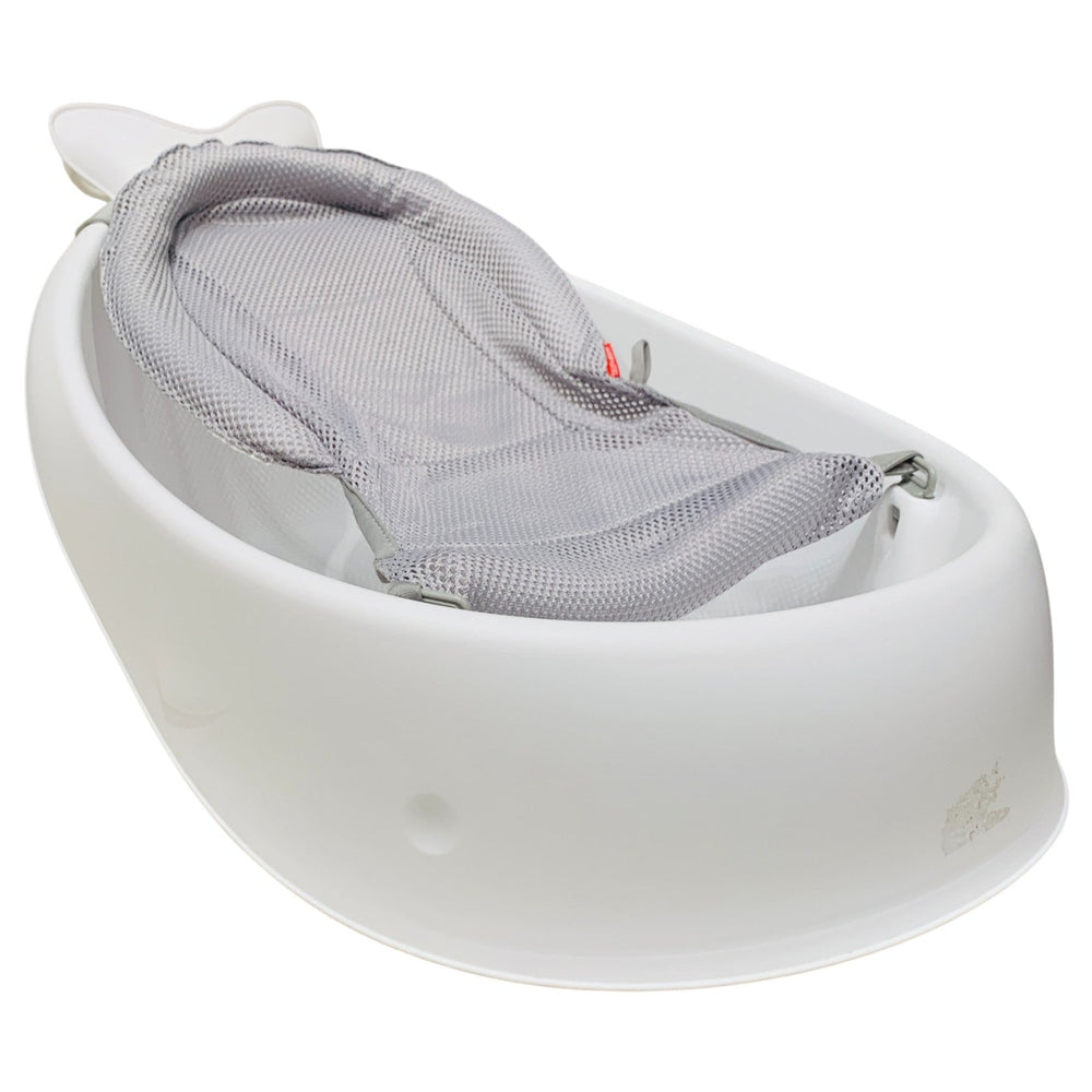 The Skip Hop Moby Smart Sling Bath Tub grows with your child giving them a flexible and cozy bathtub. Through three stages of infancy—newborn, infant, and sitters—this bathtub develops with your child. The intelligent sling supports the comfort edge and locks into two ergonomic positions: higher for full-body support and lower for seated support. Upper position allows for head-to-toe newborn cradling, while the lower position helps infants learn to sit. Your baby is safely cradled head to toe by the comfort-edge construction and dual-layered mesh. Adjust the sling so that it supports your baby comfortably as they learn to sit. Simply take off the sling once your child has mastered sitting up and bathe them in the roomy tub. Swivel hook makes it simple to hang on towel bars, shower heads, or shower bars. The interior's non-slip texture and drain plug creates a stress-free and safe bath time.
