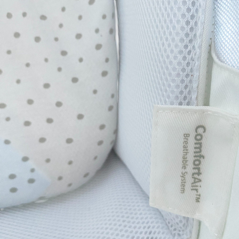 The SnuzPod 4 Bedside Crib offers a comfortable and safe sleeping solution for your baby. With its innovative ComfortAir system, featuring air-flow vents, a machine washable mesh liner, and improved base ventilation, it promotes better breathability and temperature regulation for your little one. The crib height is adjustable to easily pick up and put down you baby and make it level with your bed. This crib includes a lightweight removable bassinet and a breathable mattress with a 3D mesh cover, ensuring excellent support. Sleep soundly, feed easily, and stay close to your baby with the SnuzPod 4 Bedside Crib.