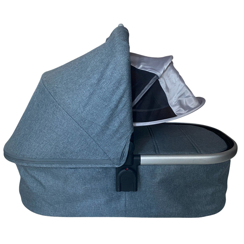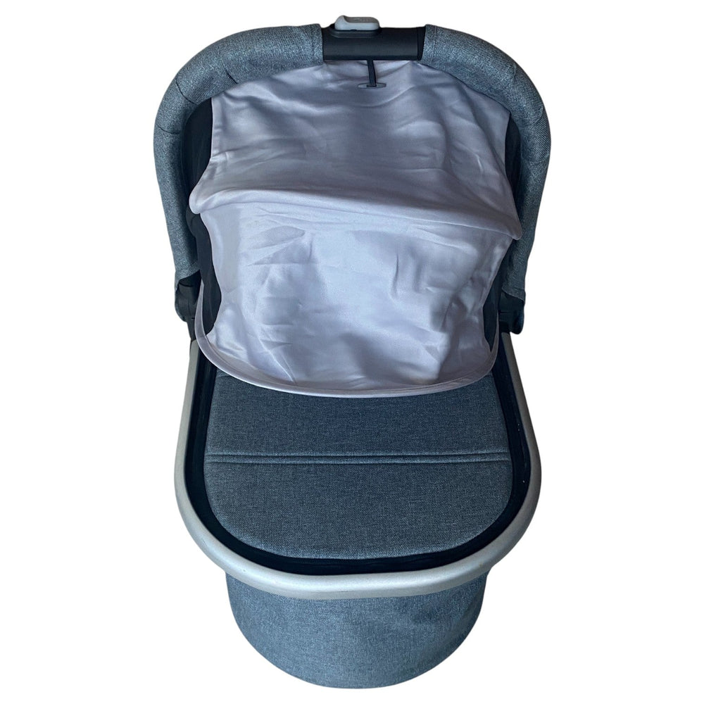 The UPPAbaby Bassinet is suitable from birth up to 9kg and 25in long, or until infant can push up on hands and knees, whichever comes first. It has a vented section at the bottom with a removable, breathable mattress. A mesh insert on the canopy's back ensures even more breathability for your baby. An extensible XL sun canopy with SPF 50+ effectively protects your child from harmful UV rays. The inside lining of the bassinet is water-repellent, keeping your baby dry and comfortable. The bassinet can be quickly and easily attached to the frame using adapters. It can be manually placed on the frame before being removed to transport your sleeping baby. In the UPPAbaby Baby Bassinet, your child is always safe, comfortable, and secure.