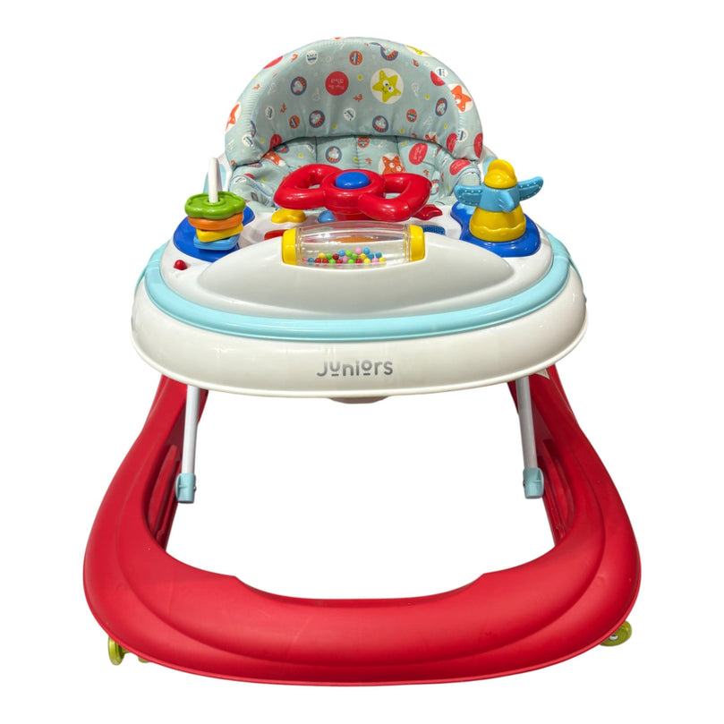 The Juniors Omega Baby Walker is thoughtfully designed to support your little one as they learn to stand and walk independently. With smooth-rolling wheels suited for both even and uneven surfaces, it ensures easy mobility while keeping safety in mind through non-skid friction pads. The walker features a musical electronic activity tray to engage your baby during movement and a soft, machine-washable seat pad for comfort and easy maintenance.
