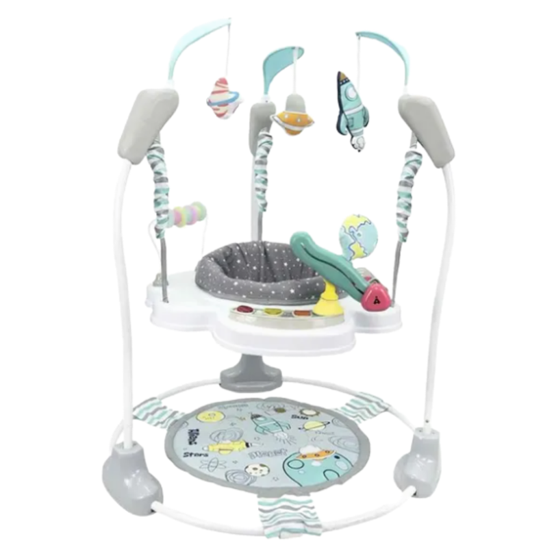 The Little Learners Baby Jumper & Activity Center is designed to make learning fun and engaging. With a 360-degree rotating seat, your little one can easily explore all the toys and activities. It features 3 removable hanging toys, a bead maze, maraca, mirror, and a small seesaw with lights and music, providing endless entertainment. The jumper includes a crinkle-sound floor mat and can be adjusted to 3 different height levels as your baby grows. The seat pad is removable and machine washable for easy cleanup, making it a practical and exciting addition to your baby's developmental journey.