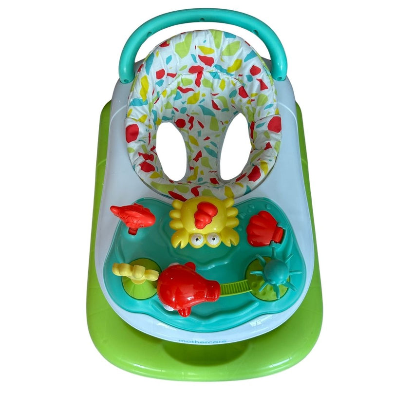 The Mothercare Sea Baby Walker grows with your child, offering three adjustable height positions. With castor wheels, your baby can easily push and step around like a real adventurer. The removable toy tray is filled with sensory toys that help develop motor skills, including a fish lever, clicking whale, spinning octopus, and more! Designed with a grab bar behind the padded seat, it can also double as a push-along toy for added fun.