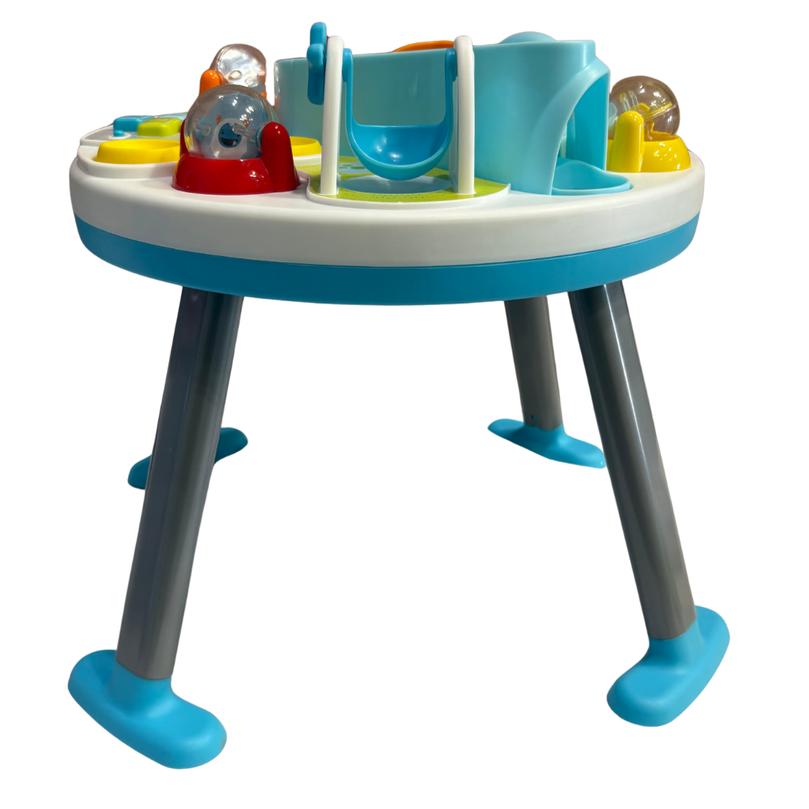 The Skip Hop Explore & More Let's Roll Activity Table is packed with 20 developmental activities designed to grow with your child from 6 to 36 months. With two stages of play—floor and table—it features a light-up hopscotch piano, swirl slide, and exciting ball-based games that encourage motor skills, counting, and sensory exploration. Easy to assemble and perfect for active, curious little ones.