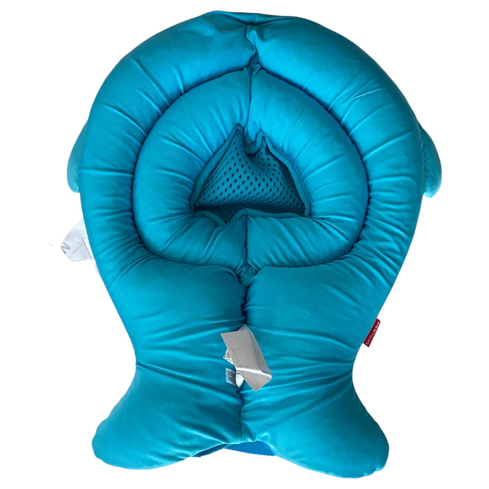 The Skip Hop Newborn Softspot Sink Bather - Blue is a plush and supportive bath accessory designed for newborns and infants. Its soft terry surface and padded whale tail protect your baby's head, while the cushioned design fits most sinks for comfortable, convenient bathing. The mesh bottom ensures quick water drainage, and the Velcro® strap makes hanging to dry simple and easy. Perfect for safe, cozy, and stress-free bath time.