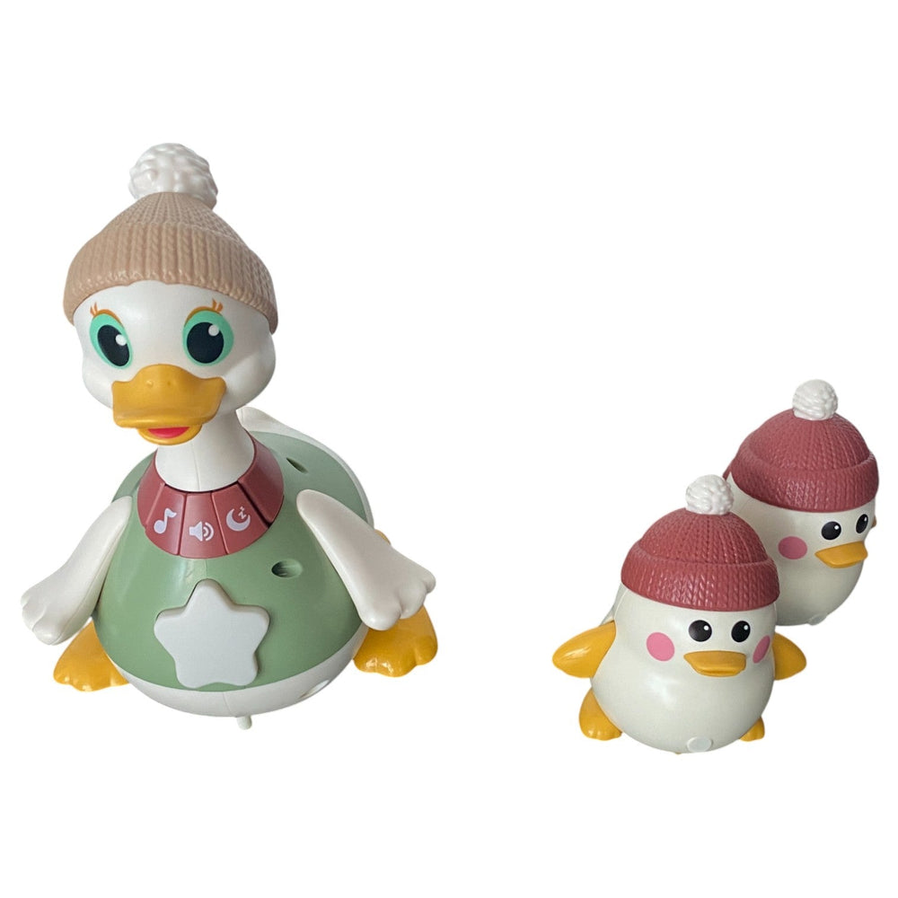 The Hola Waddling Family Duck is a delightful tummy time toy that combines fun, learning, and sensory stimulation. Featuring a talking mama duck with a moving mouth, music button, and adjustable volume, this interactive toy entertains babies while supporting motor skill development, hand-eye coordination, and cognitive growth. The magnetic baby ducks encourage reaching, grasping, and crawling, while vibrant colors, soft textures, and playful sounds engage your baby's senses. Made from non-toxic, safe materials, the Hola Waddling Family Duck ensures worry-free playtime while fostering auditory, tactile, and visual development.