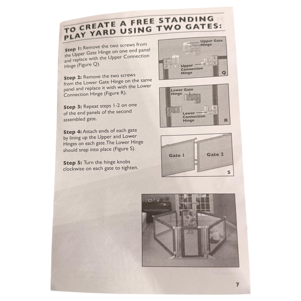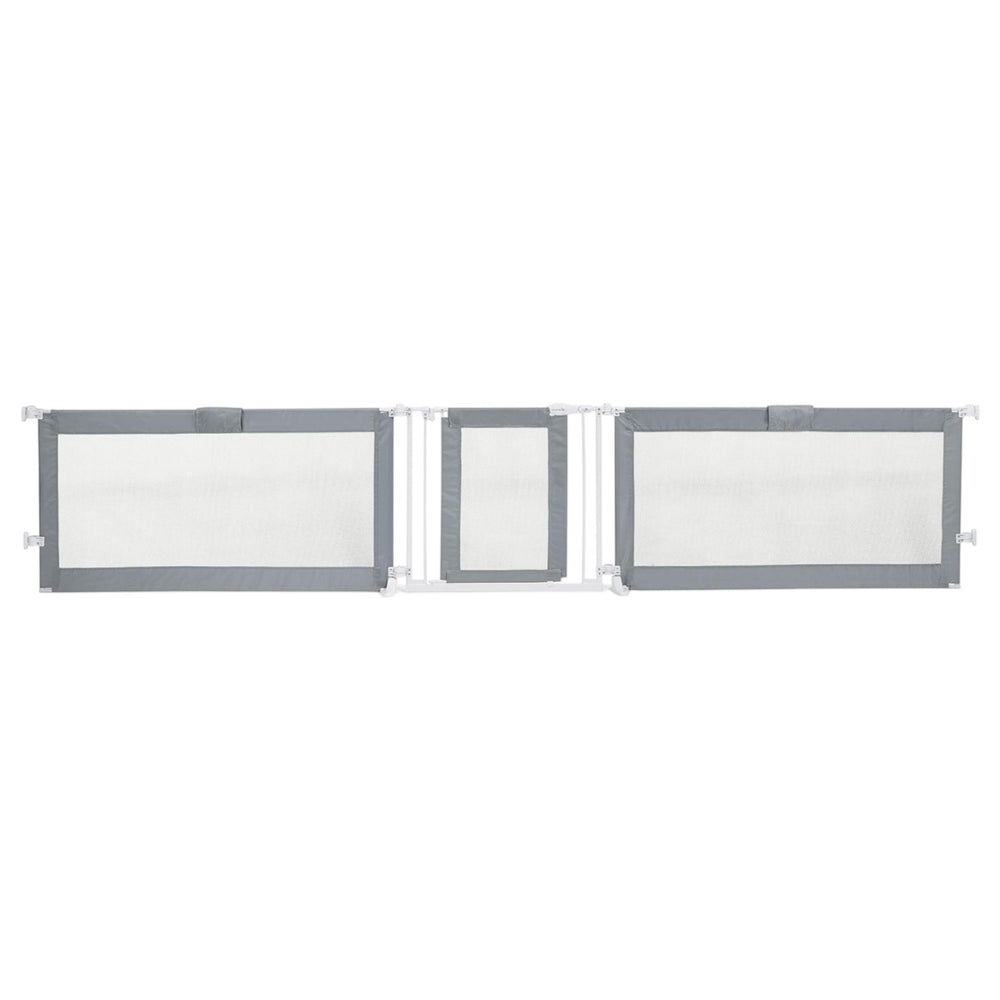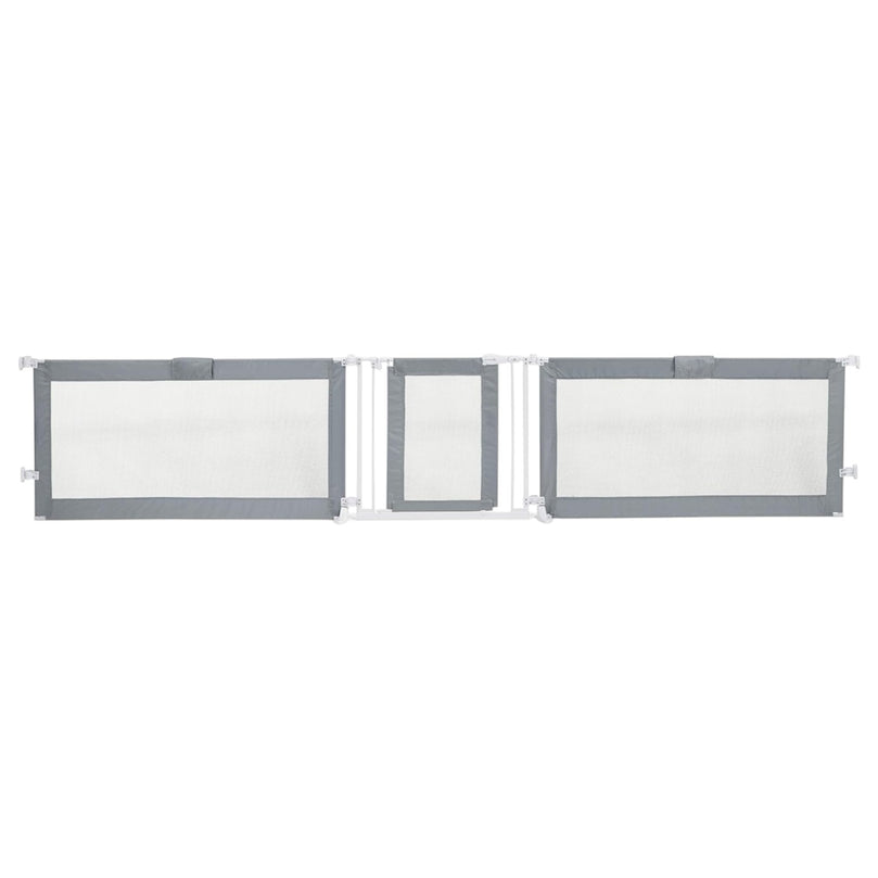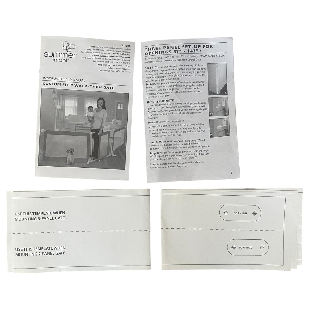 The Summer Infant Custom Fit Gate Convertible to Playard – Grey (Pack of 2) offers a versatile and secure solution for your home. Designed to mount at the top of stairs or between rooms, it includes all necessary hardware and a baseboard kit for easy installation. The 30-inch tall gate fits openings up to 50 inches wide, providing a durable barrier while allowing full walkthrough access. Crafted from decorative mesh fabric with a silver satin finish and charcoal accents, it complements your home décor. Its simple push-down lock lever ensures easy operation, and the gate can be safely positioned 6 inches away from the top stair when used at landings. The pack includes two gates for maximum flexibility.