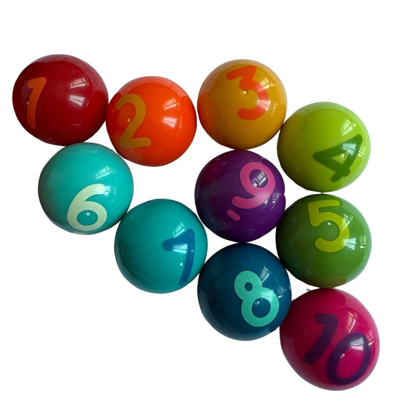 The Battat Numbers Colours Gumball Machine makes counting and number recognition exciting with 10 colorful number balls. Designed to build cause-and-effect understanding, kids can turn the key or press the lever to release a ball and watch it roll, making learning interactive and fun.