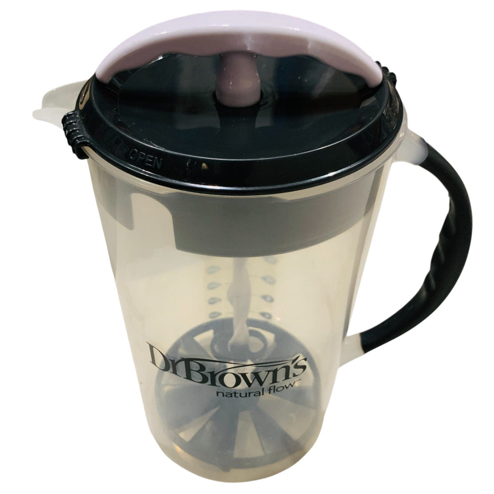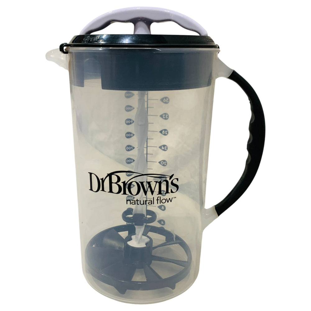 The Dr. Brown's Baby Formula Mixing Pitcher with Adjustable Stopper-Black is designed for quick, smooth, and efficient formula preparation. Its unique mixing blade dissolves up to 36 ounces of formula with ease, preventing clumps and ensuring a consistent blend every time. The adjustable stopper keeps the blade submerged to reduce air bubbles, helping minimize gas and air-swallowing during feeds. With the ability to prep up to four 8 oz/250 mL bottles at once, it’s perfect for busy parents and nighttime routines. The lightweight design makes it a convenient travel essential, while the locking lid and easy-pour spout help prevent spills. Simple to assemble, fully disassemblable, and dishwasher safe, this modern formula pitcher delivers practicality, convenience, and style in one.