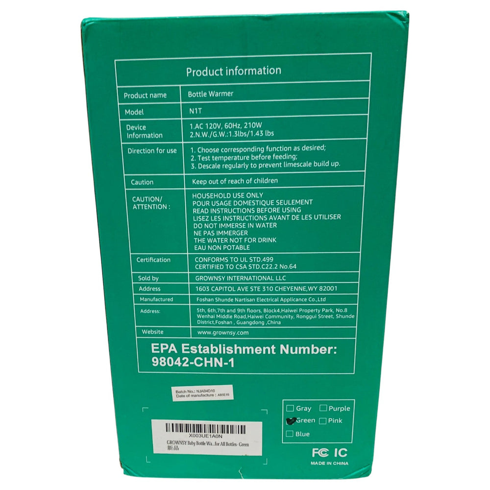 The Grownsy Fast Bottle Warmer with Timer ensures your baby’s milk is warmed safely and efficiently. Designed for convenience and nutrition, it features an integrated timer that allows parents to pre-set warming times, preventing overheating and preserving nutrients. Ideal for day or night use, this bottle warmer simplifies feeding while keeping milk at the perfect temperature every time.