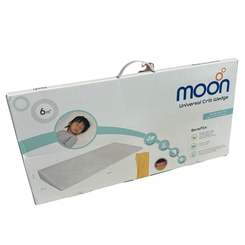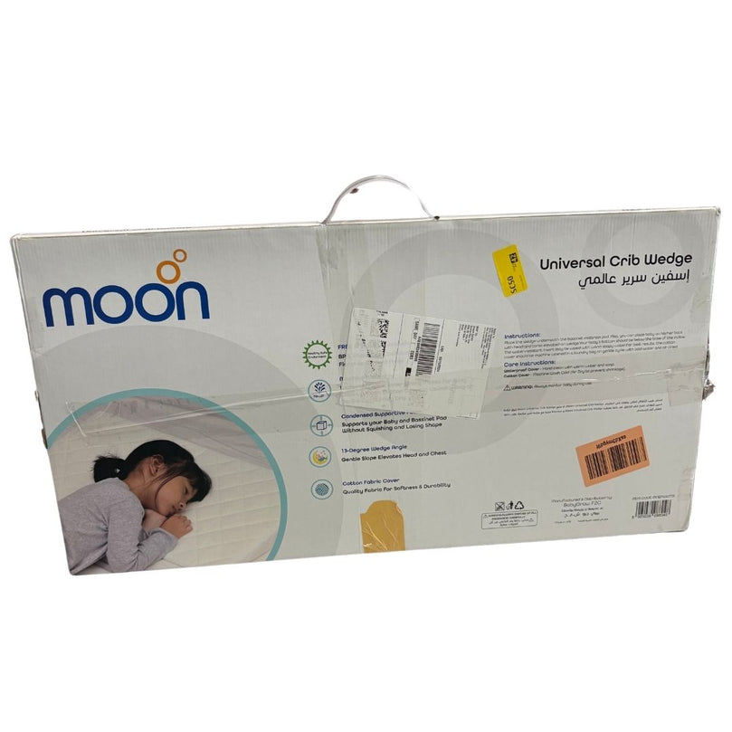 The Moon Organic Universal Crib Wedge Pillow is designed to give your baby a safe and comfortable sleep with 100% organic cotton and hypoallergenic down alternative filling. The ergonomic 13-degree angle helps reduce acid reflux, colic, and congestion for better rest and digestion. With dual covers for easy cleaning and a firm foam wedge for reliable support, this sleep solution ensures peace of mind for parents and comfort for babies.