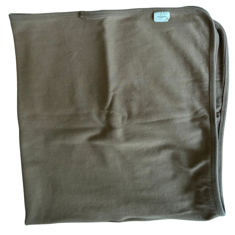The Mushie Ribbed Baby Blanket soothes your baby into restful sleep with this ultra-soft stretchy swaddle, designed for comfort from day to night. Its breathable, cool-to-the-touch fabric ensures a snug yet gentle fit that helps promote safe sleep. Versatile in use, it works as both a secure swaddle and a cozy blanket. This swaddle is perfect for creating a calming sleep environment for your newborn. Always discontinue use once your baby shows signs of rolling over.