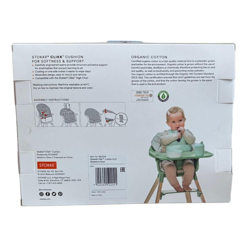 The Stokke Clikk Cushion provides extra back and side support for babies learning to sit, ensuring comfort and posture in the Clikk High Chair.Designed for a snug fit with structured seams, it’s simple to attach and remove, promoting both comfort and healthy development.
