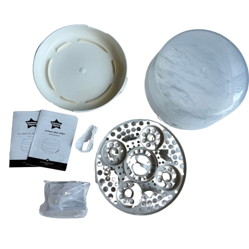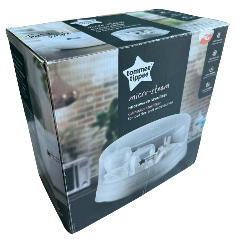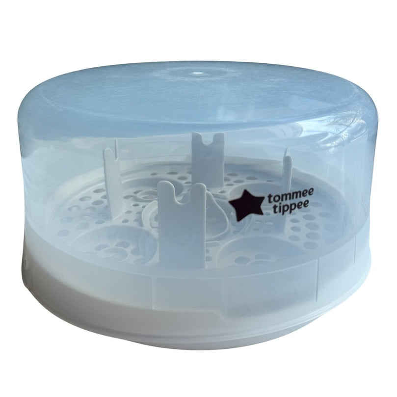 The Tommee Tippee Microwave Sterilizer gives you a quick, easy and portable way to sterilize your baby’s bottles. Ensure feed-ready bottles with this steam sterlizier which can sterilize 4 bottles in approximately 4 mins using 100% natural steam. No residue, no chemicals. Steam reaches every surface, killing 99.9% of germs. Compact, easy to clean design. Use teat tongs for hygienic removal. Stay prepared for your baby anytime.