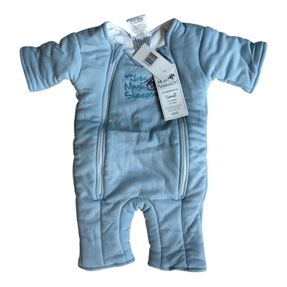 The Baby Merlins Magic Sleepsuit Small is the original swaddle transition solution designed for babies aged 3–6 months. Crafted with soft jersey cotton and a breathable polyfil layer, it offers cozy comfort while promoting safe back sleeping and independent sleep habits. The patented design muffles reflexive movements that disrupt sleep, helping babies rest better. Featuring a convenient double zipper for easy diaper changes, it's machine washable and available in cotton or microfleece options. Created by a pediatric physical therapist, this sleep suit supports healthy development during the critical transition phase.