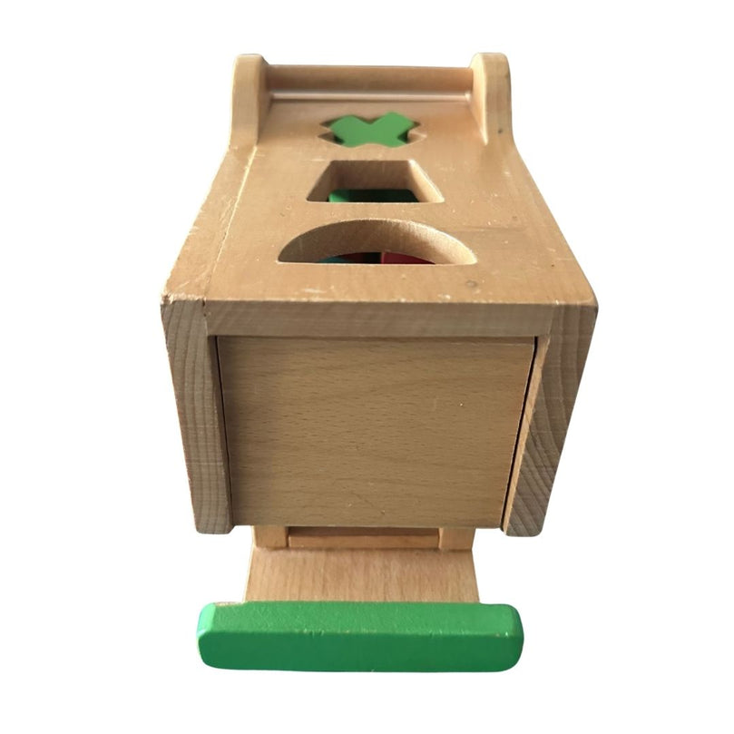 The Wooden shape sort rubbish truck is a fun and interactive toy for toddlers. It includes seven colorful shapes that can be pushed through matching holes to load the truck. Once loaded, kids can drive it around for hours of entertainment.