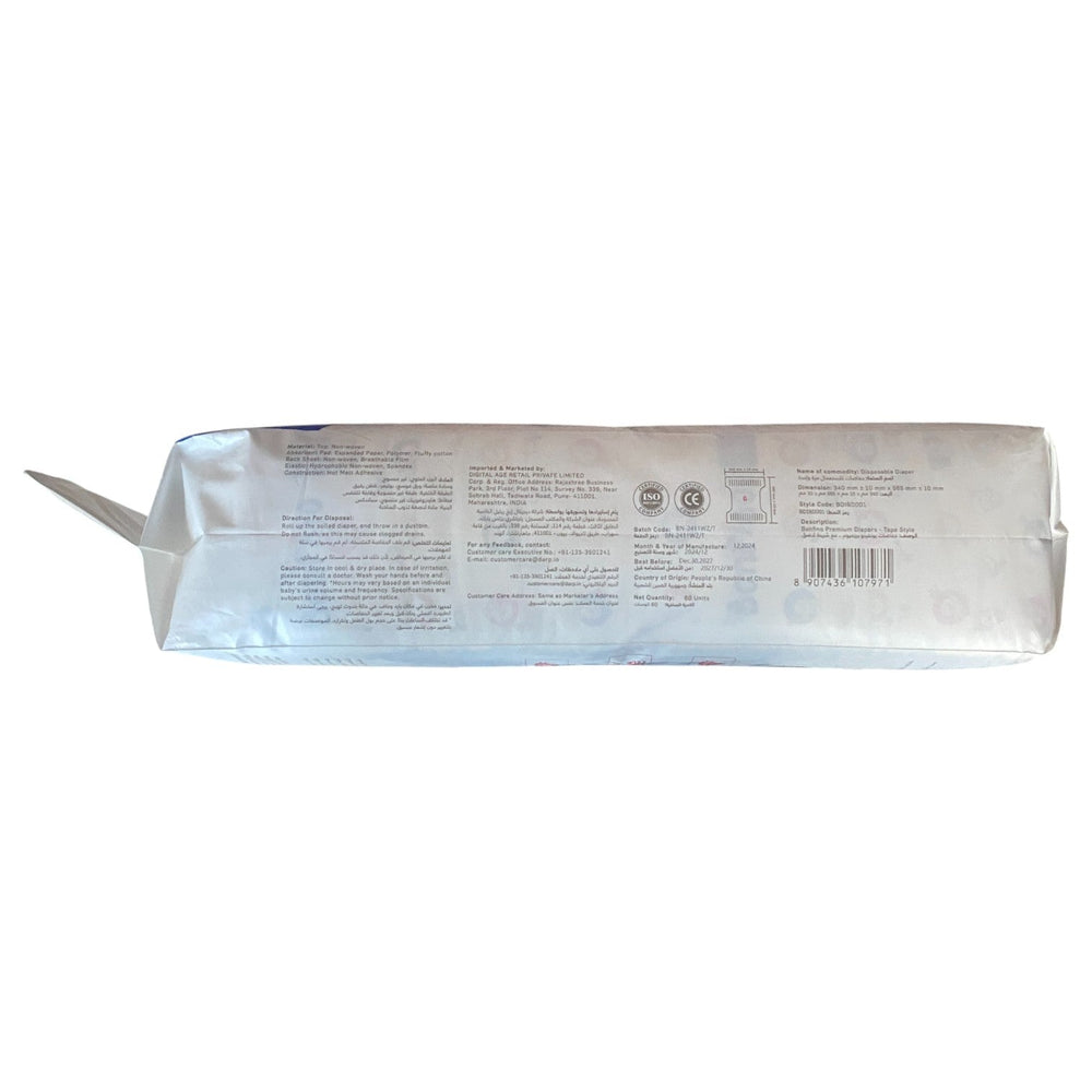 The Bonfino Premium Diapers are designed to provide superior comfort, reliable protection, and long-lasting dryness for your baby’s delicate skin. Crafted with high-absorbency core technology, these premium baby diapers help lock in moisture effectively to keep your little one dry day and night. The soft, breathable materials ensure gentle contact with sensitive skin, while the flexible fit allows freedom of movement for active babies. With leak-guard barriers and a snug waistband, Bonfino Premium Diapers offer dependable leak protection and all-day comfort, making them an ideal choice for everyday baby care.