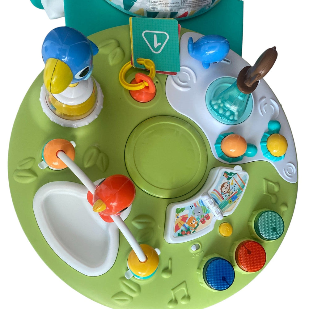 The Bright Starts Around We Go 2-In-1 Walk-Around Activity Center & Table is a fun, space-saving play solution designed to grow with your child. This versatile 2-in-1 design easily transforms from a walk-around activity center into a toddler play table, encouraging movement, exploration, and independent play. With a removable seat, full-circle access to toys, and engaging island-themed activities like a light-up drum set and tropical music, it supports motor skills, sensory development, and imaginative play from babyhood into toddler years. Ideal for small spaces, it’s easy to clean, store, and built with baby-safe materials for everyday use.
