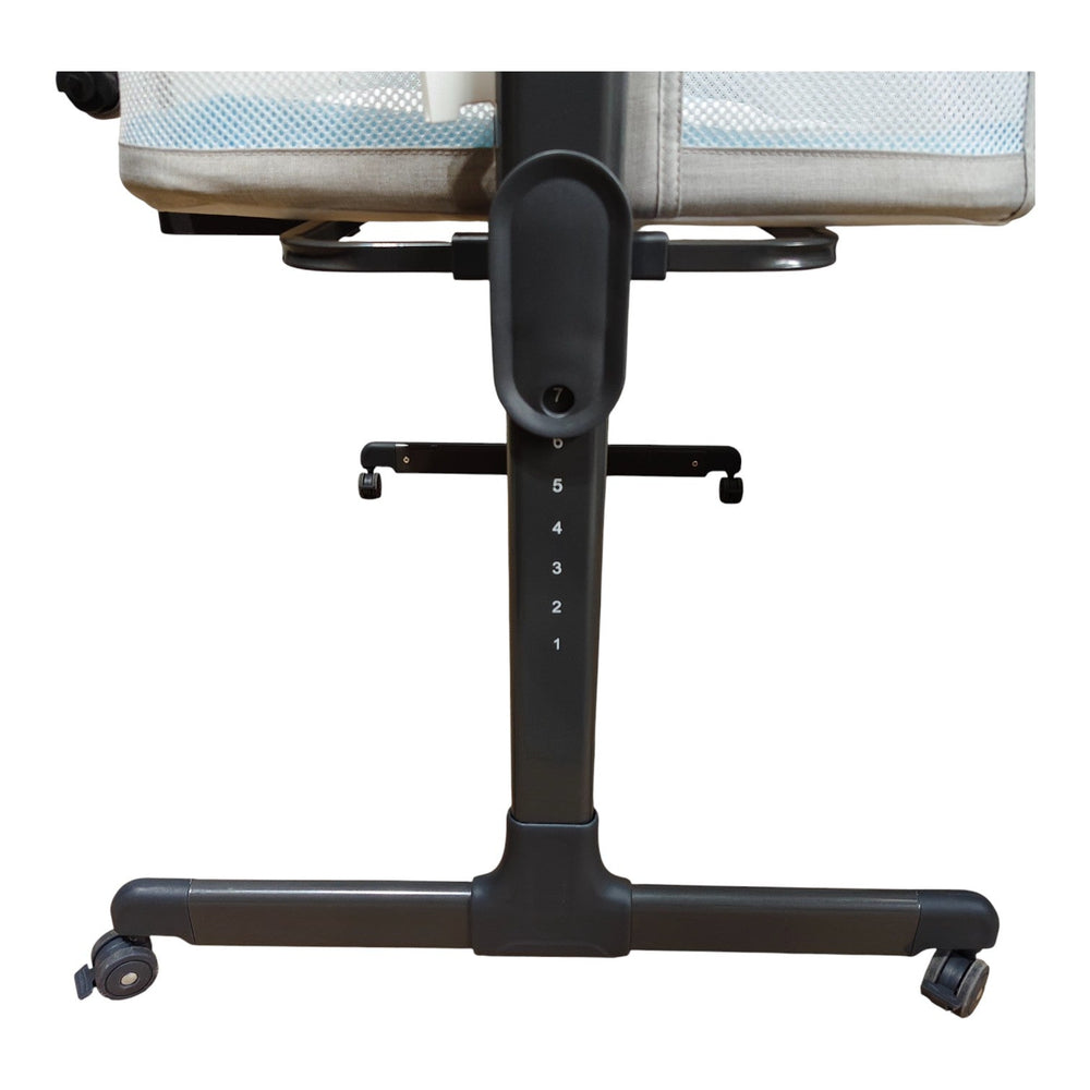 The Bumble & Bird Baby Bedside Bassinet in Cream is a stylish and safe sleep solution for newborns up to 9 kg. Featuring breathable mesh sides, 7 adjustable heights, detachable wheels, and a soft mattress, it ensures comfort and convenience for parents. Made from durable, easy-to-clean 300D linen with a washable cover, it also includes a storage shelf and compact fold design.