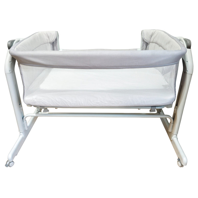 The Chicco Next2Me Magic is a side-sleeping crib that lets parents keep their babies close at night comfortably. Its new side panel mechanism allows easy opening and closing from your bed with just one hand. The crib's height can be adjusted to 11 levels to fit any bed, and its retractable feet make it perfect for beds with drawers. Chicco Next2Me Magic adds style to your bedroom with its premium fabrics, available in various colors to suit any taste. It is suitable for babies from birth. This crib is a dream for parents, providing a safe and comfortable space for the baby while keeping them within arm's reach for breastfeeding and midnight care.