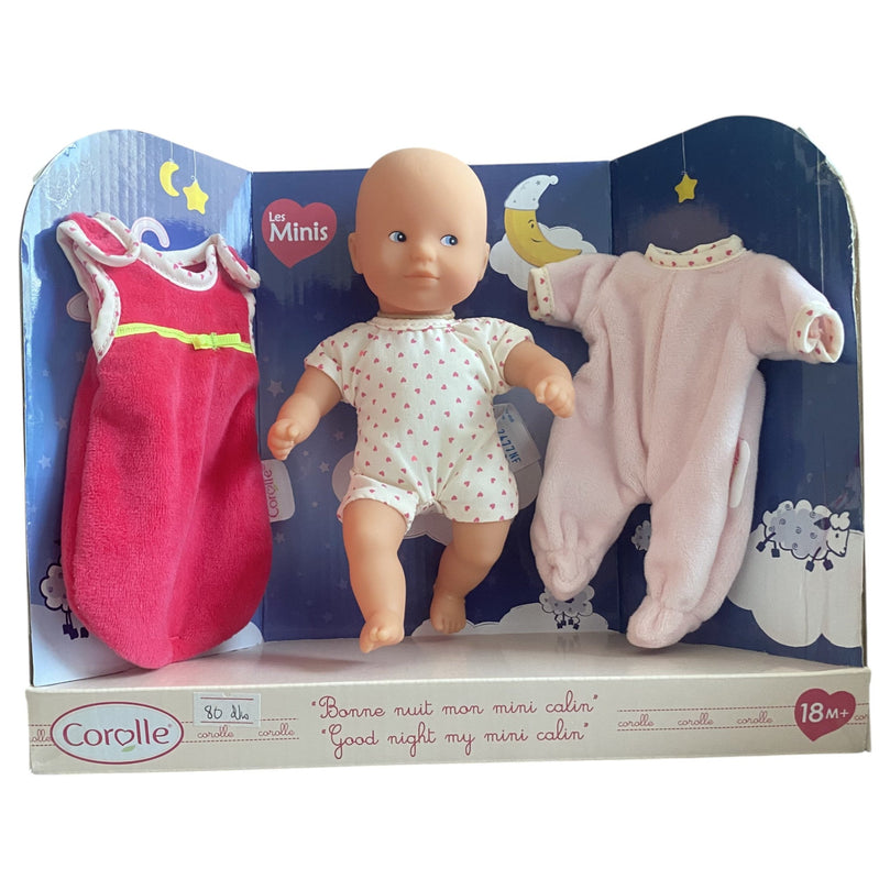 The Mini Calin Good Night Blossom Garden Doll Set includes an 8-inch lightweight Mini Calin doll, pajamas, and a bag sleeper, perfect for on-the-go play. Designed with hook-and-loop fasteners, the pajamas and bag sleeper are easy for little hands to dress and undress. The doll’s head, arms, and legs are made from soft, vanilla-scented vinyl, featuring beautifully painted blue eyes. Part of the Mon Premier Poupon Corolle collection, this set encourages early doll play and is ideal for children aged 18 months and up.