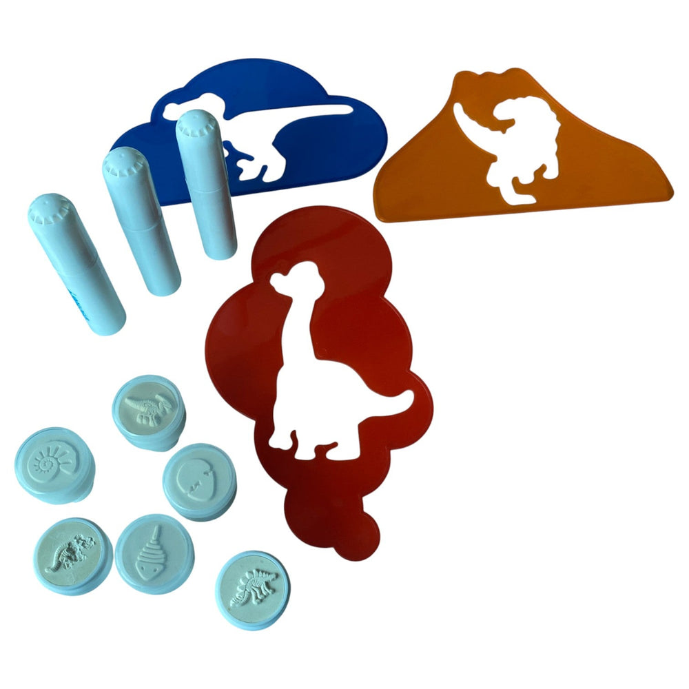 The Discovery Kids Dino Doodles Jumbo Aquatic Drawing Art Mat lets children create colorful art using water-filled pens. It includes 3 magic water pens, 6 stamps, 3 dinosaur stencils, and 1 sponge for endless creative fun. Safe, mess-free, and reusable, it's perfect for developing imagination and fine motor skills.