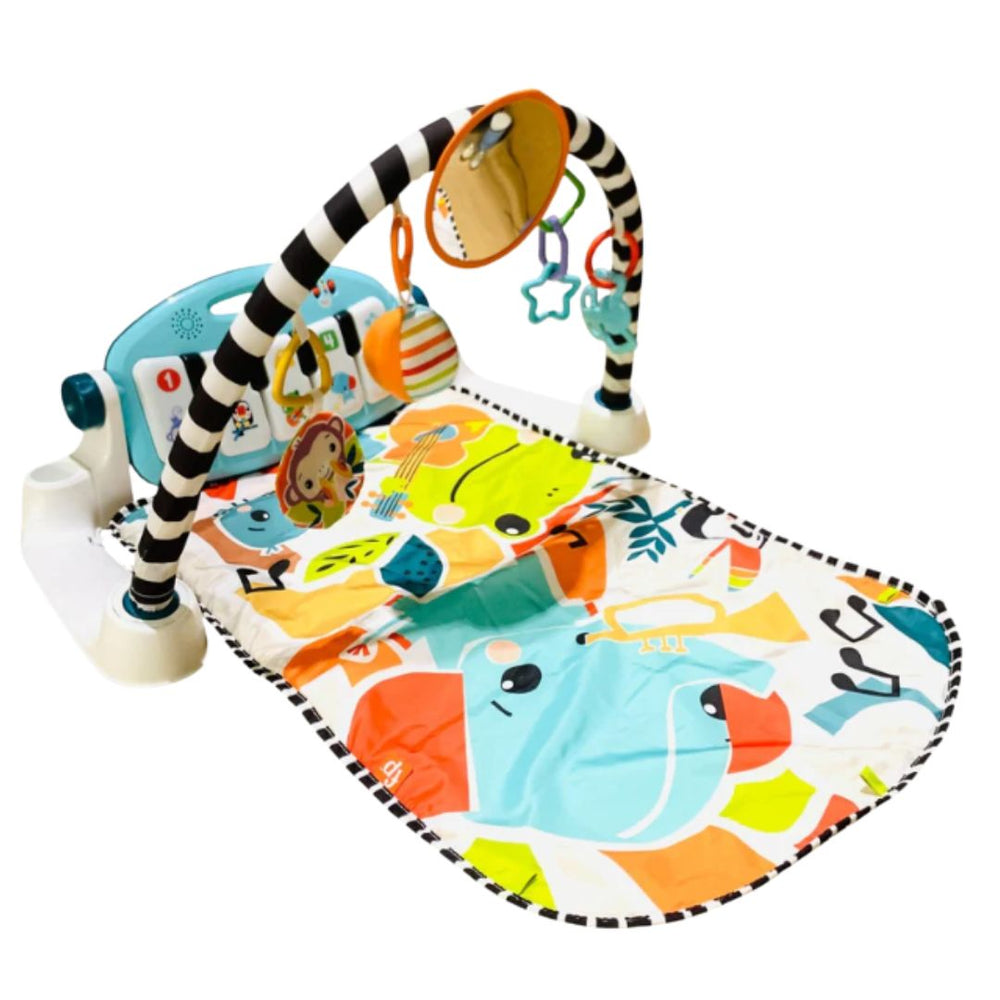 The Fisher-Price Glow & Grow Kick & Play Piano Gym - Blue is a versatile baby activity mat designed to engage and entertain your little one from newborn to toddler. This soft playmat features a repositionable high-contrast toy arch with 10 linkable toys, including a jingle ball, butterfly teether, crinkle toy, self-discovery mirror, and colorful shape links. The removable piano includes 5 light-up keys and 4 musical settings, including a freestyle mode, offering endless musical fun. With 3 Smart Stagesâ„¢ learning levels and over 85 songs, sounds, and phrases, it introduces babies to animals, colors, numbers, and shapes while supporting tummy time, lay and play, and sitting up. Made with a soft, machine-washable mat, the Glow & Grow Piano Gym combines music, lights, and learning to create an interactive and educational experience.