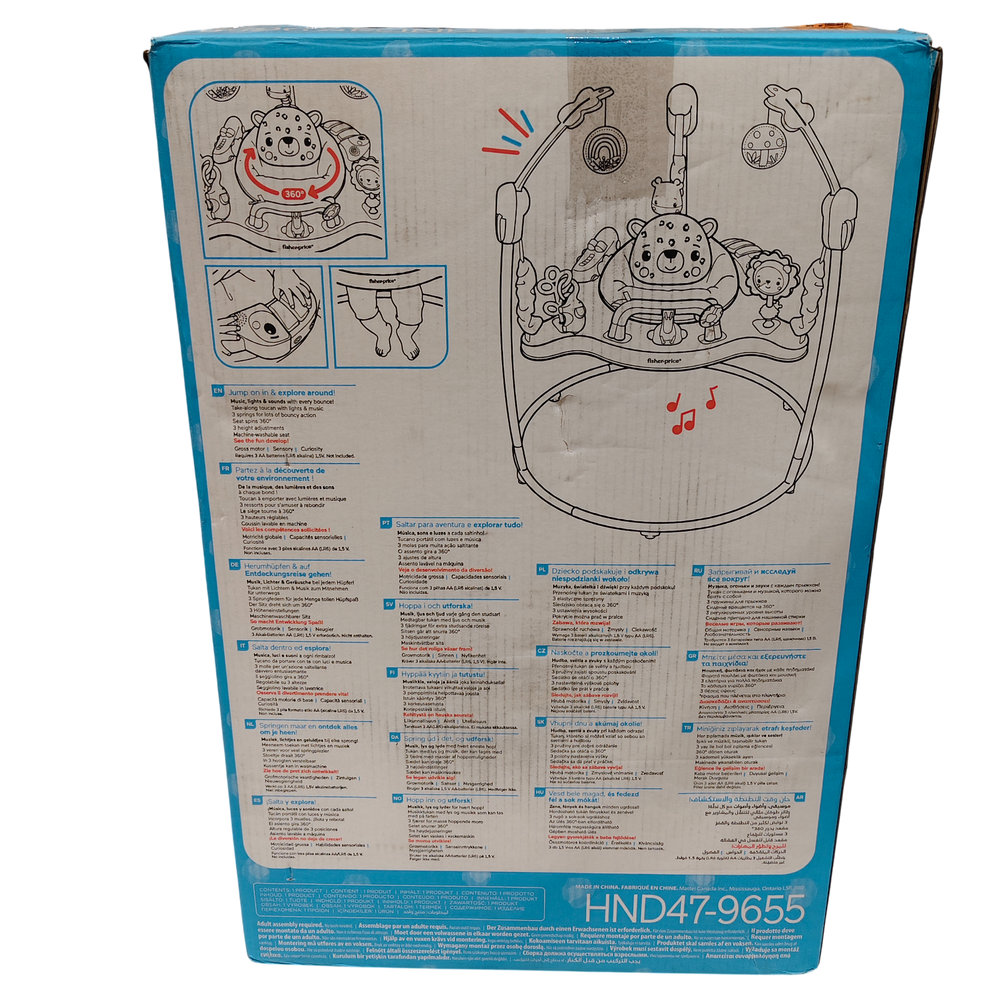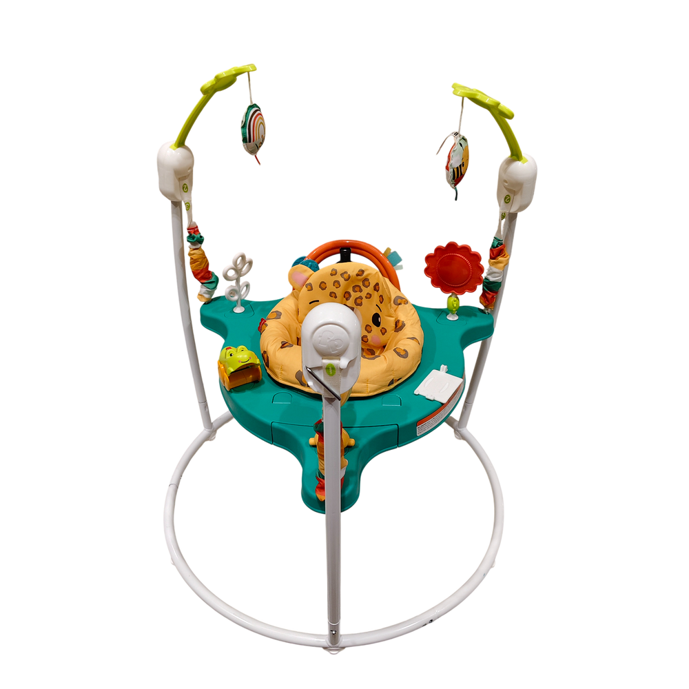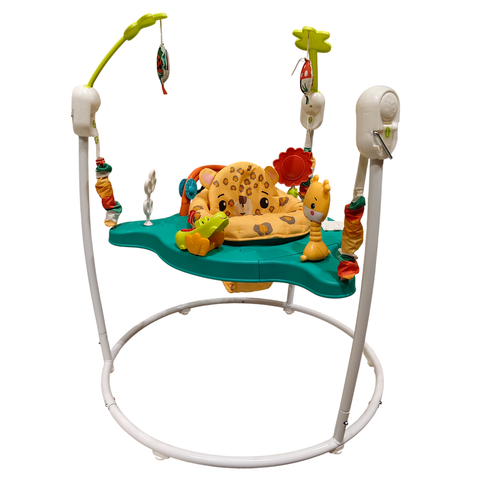 The Fisher-Price Leaping Leopard Jumperoo Activity Center turns playtime into a fun developmental adventure for your little one. Designed for babies who can hold their head upright but aren’t yet walking, this freestanding jumper features a 360° rotating seat surrounded by interactive toys that keep your baby entertained and engaged. Each joyful jump activates lights, sounds, and music, encouraging movement and strengthening motor skills.