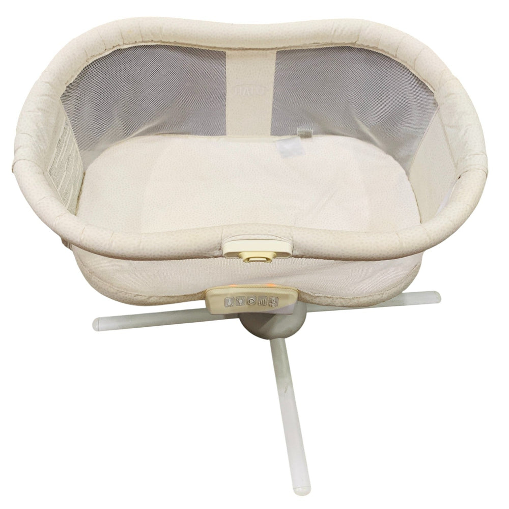 The HALO Bassinet Swivel Sleeper is designed to provide safe and convenient sleep for both baby and parents. Its unique 360-degree swivel feature offers ultimate convenience and comfort, making it ideal for mothers, especially those recovering from childbirth or C-sections. The patented lowering bedside wall allows easy access to baby from bed and automatically locks for safety. Mesh walls ensure airflow and enable parents to see their baby at eye level. The bassinet includes a Soothing Center with features like an amber nightlight, floodlight, 2 vibration levels, and 4 soothing sounds, all with auto-shutoff for added convenience.