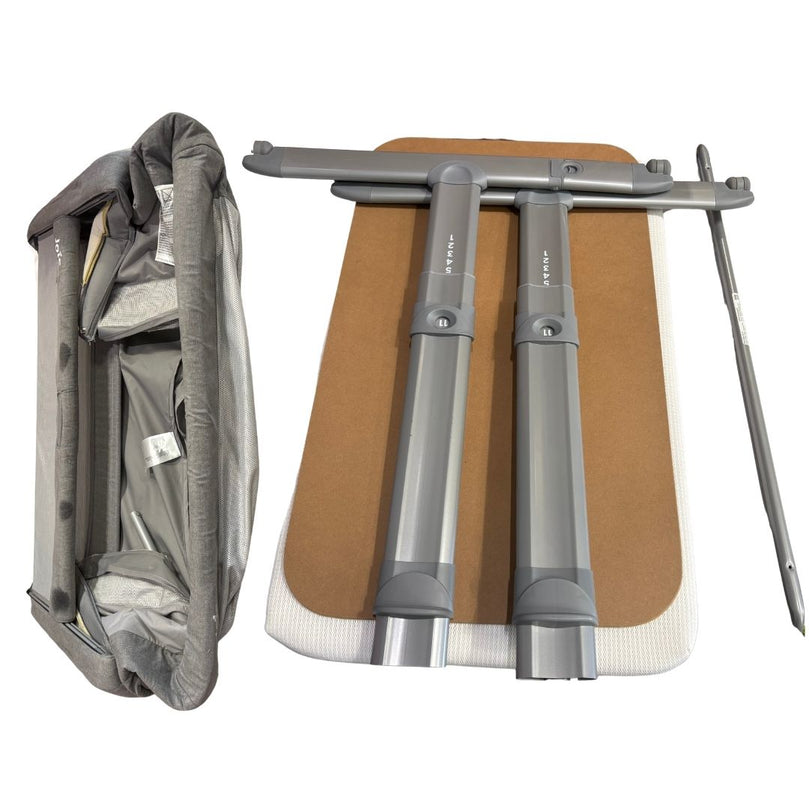 The Joie Roomie Glide Bedside Crib is a sophisticated choice for modern parents, featuring a one-touch gliding mechanism that allows you to sleep closely beside your baby. It includes a cushioned yet firm mattress and an adjustable height system with 11 settings to fit most beds. The Joie Roomie Glide Bedside Crib also offers a gentle tilt system for smooth inclines, ensuring comfort for your baby during bedtime. With lockable wheels, woven fabric construction for easy cleaning, and a retractable foot design, this crib combines safety, convenience, and style.