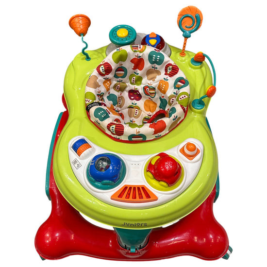 The Juniors Rocker Activity Baby Walker keeps your baby entertained and occupied for hours. It is designed with a textured footbed and an activity tray with light and sound features to stimulate your baby's senses. As and when needed, it can be converted into a rocker and jumper, making it a versatile pick. It will keep your baby safe and cheerful throughout time.