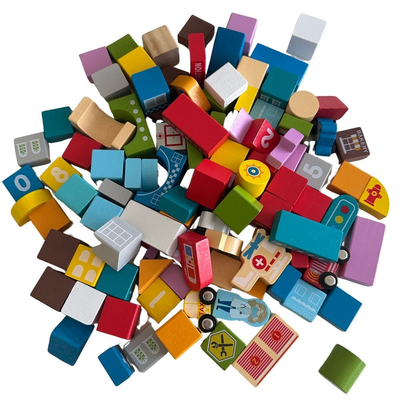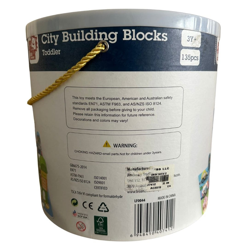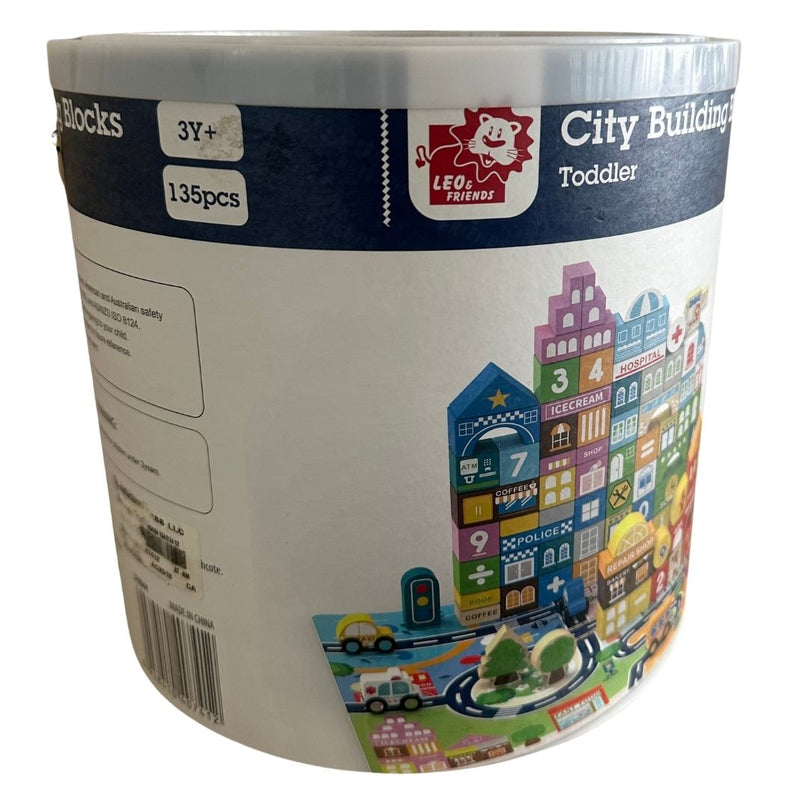 The Leo & Friends Wooden City Building Block Toy Set lets your child build their dream city with this 100-Piece Wooden Stacking City Toy Kit, designed to spark imagination and learning through play. With a variety of buildings, roads, and vehicles, it supports fine motor skills and cognitive development using safe, durable materials.