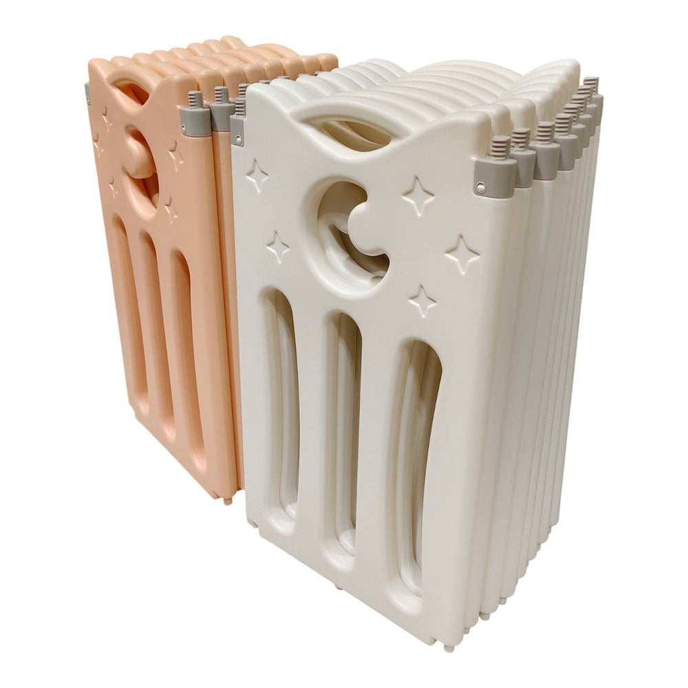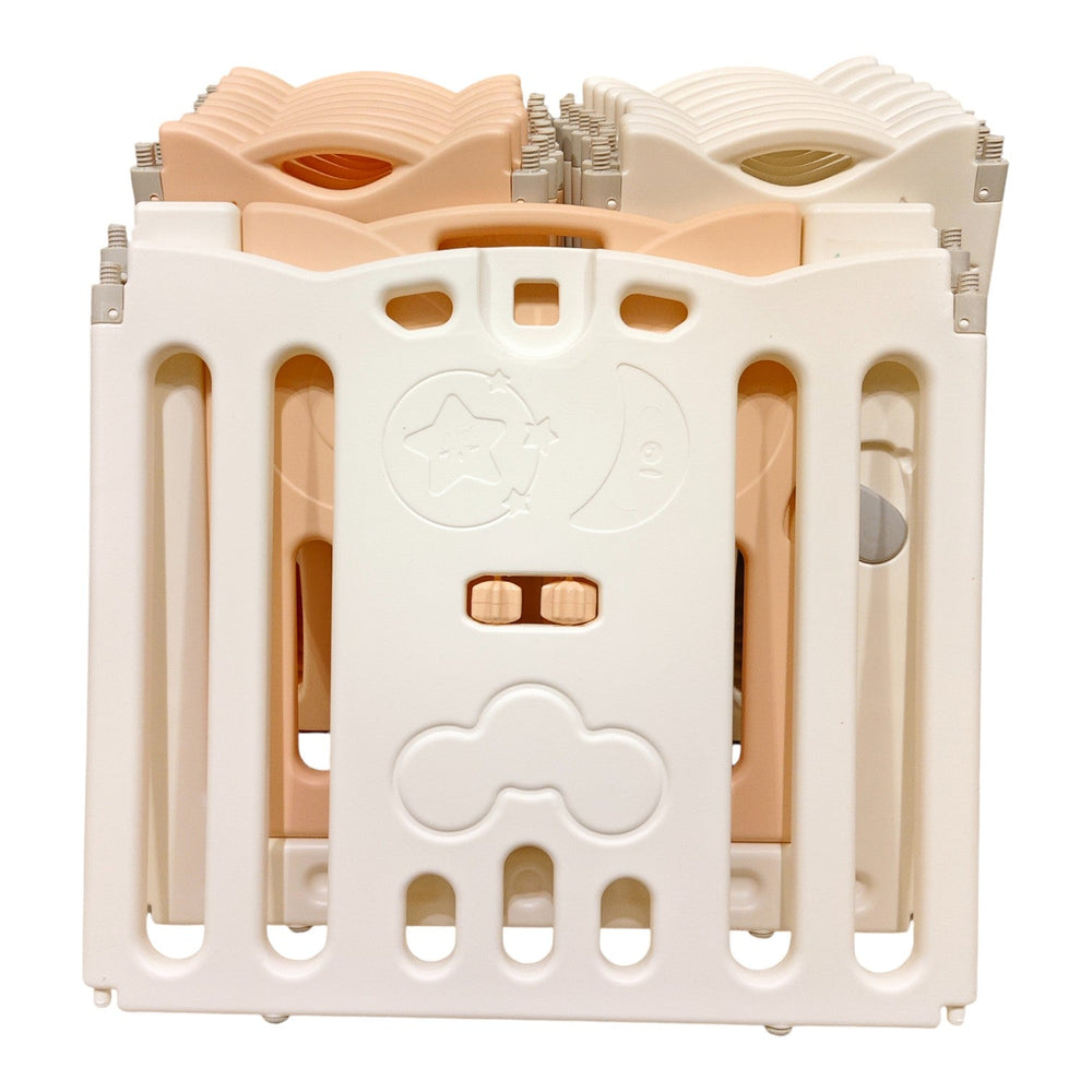 Featuring double knob hinges for secure panel connections, rounded corners, and a no-gap design to prevent little fingers from getting stuck, every detail is crafted with your child’s safety in mind. The external safety lock keeps your child securely inside, while the activity/game panel adds fun and engagement. When playtime is over, the foldable design allows for quick storage and easy portability. With its soft pink and white color scheme, this play yard is both functional and stylish — a must-have for modern parents.