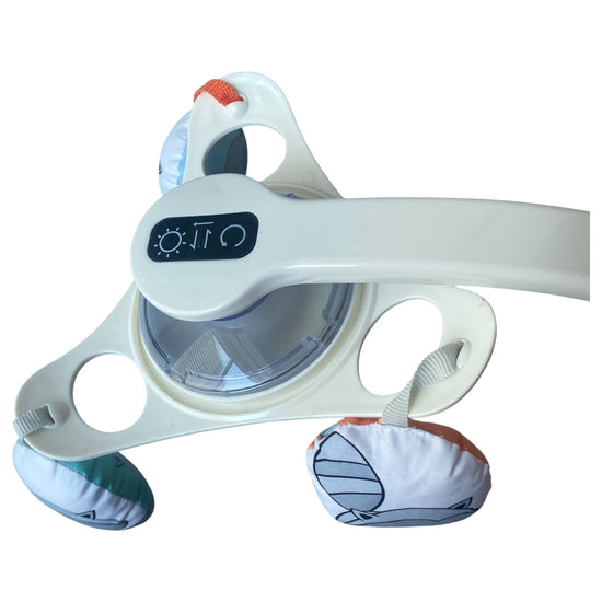 The Little Learners Forest Friend Portable Rocker is a versatile seat that grows with your child from newborn to toddler. It gently vibrates to soothe your baby, features a reclinable seat for comfort, and includes a removable toy arm with hanging toys for entertainment. The 360° touch sensor plays music and lights up with a soft glow, while the foldable canopy and adjustable seat height make it perfect for use anywhere.