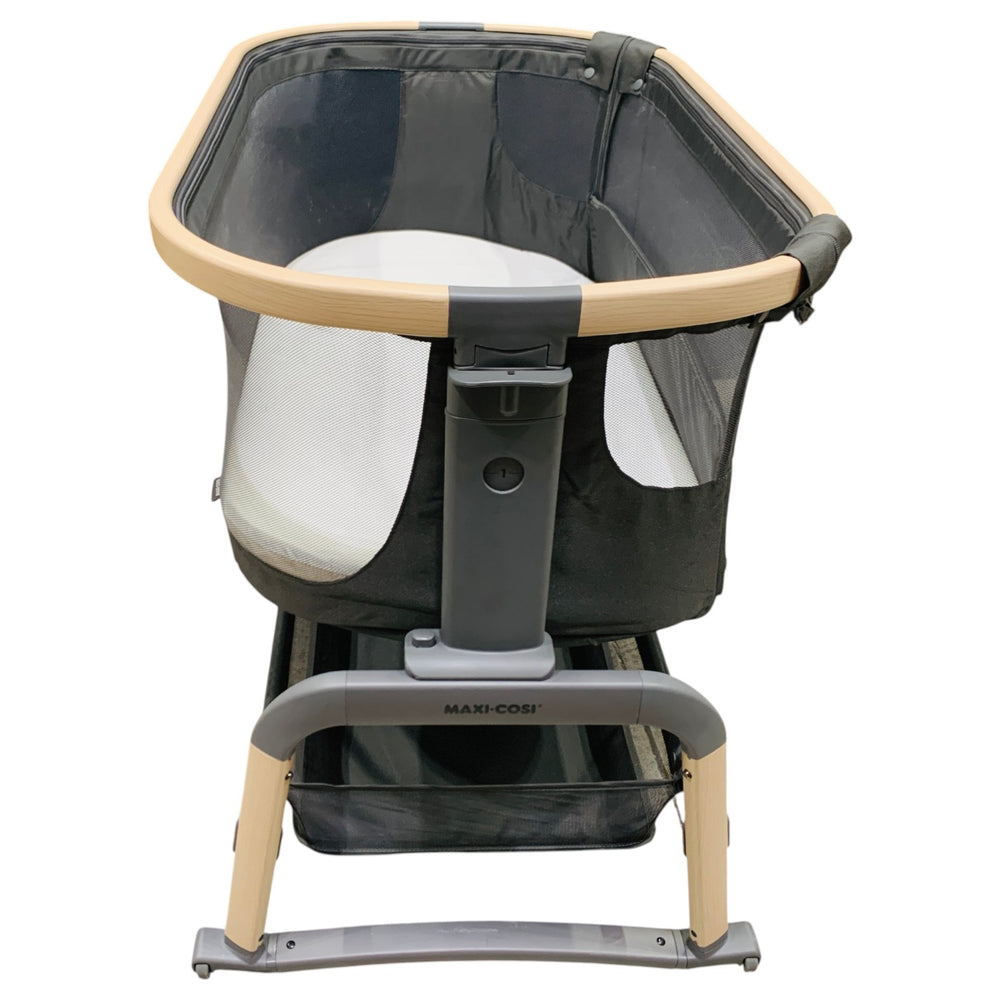 The Maxi-Cosi Iora is an extra-comfortable, soothing co-sleeper, designed to keep your baby close. The thick mattress ensures optimal comfort, while a rocking function helps soothe your baby during nap times. Crafted with premium, 100% recycled fabrics and breathable mesh, it provides a cozy and safe environment. Plus, a spacious storage basket underneath keeps baby essentials nearby for easy access.