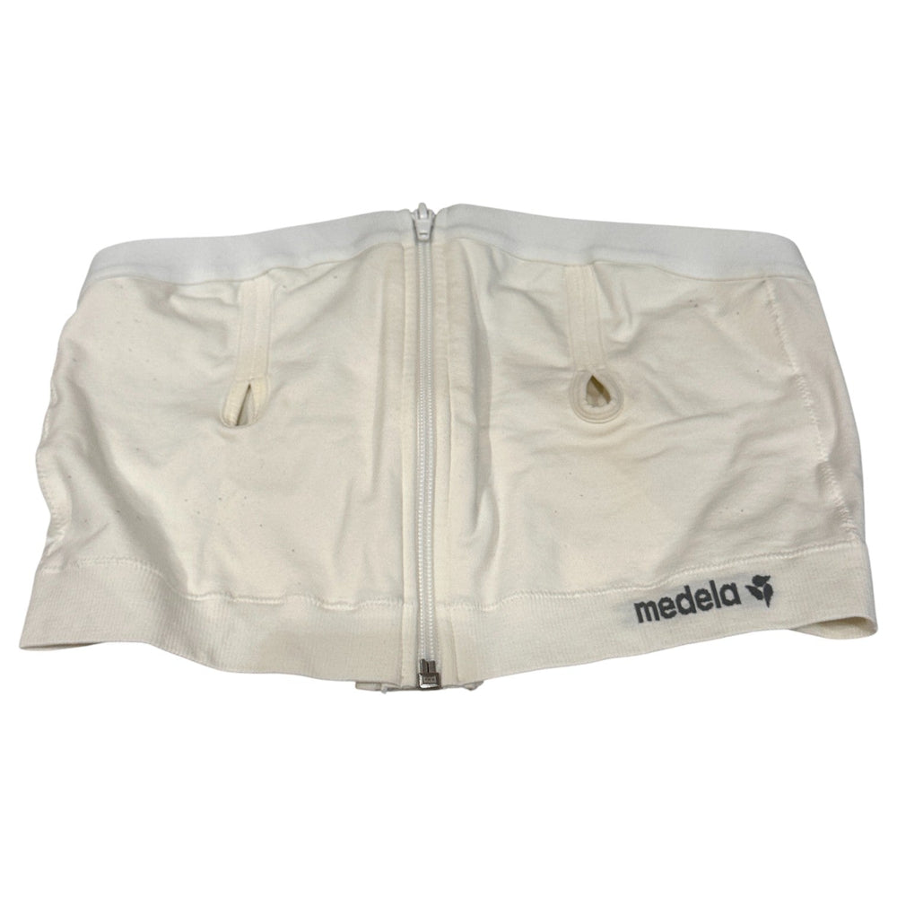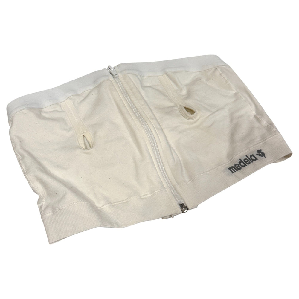 The Medela Easy Expression Bustier, featuring Adaptive Stretch technology, adjusts to your body for a comfortable fit during pumping. Wear it alone or over a nursing bra. It's machine-washable and works with Medela double electric breast pumps. Reinforced openings ensure no-slip support, and a top hook aids in easy zipping. Available in black or nude, it's 85% nylon and 15% spandex for comfort and support, allowing moms freedom while double pumping.
