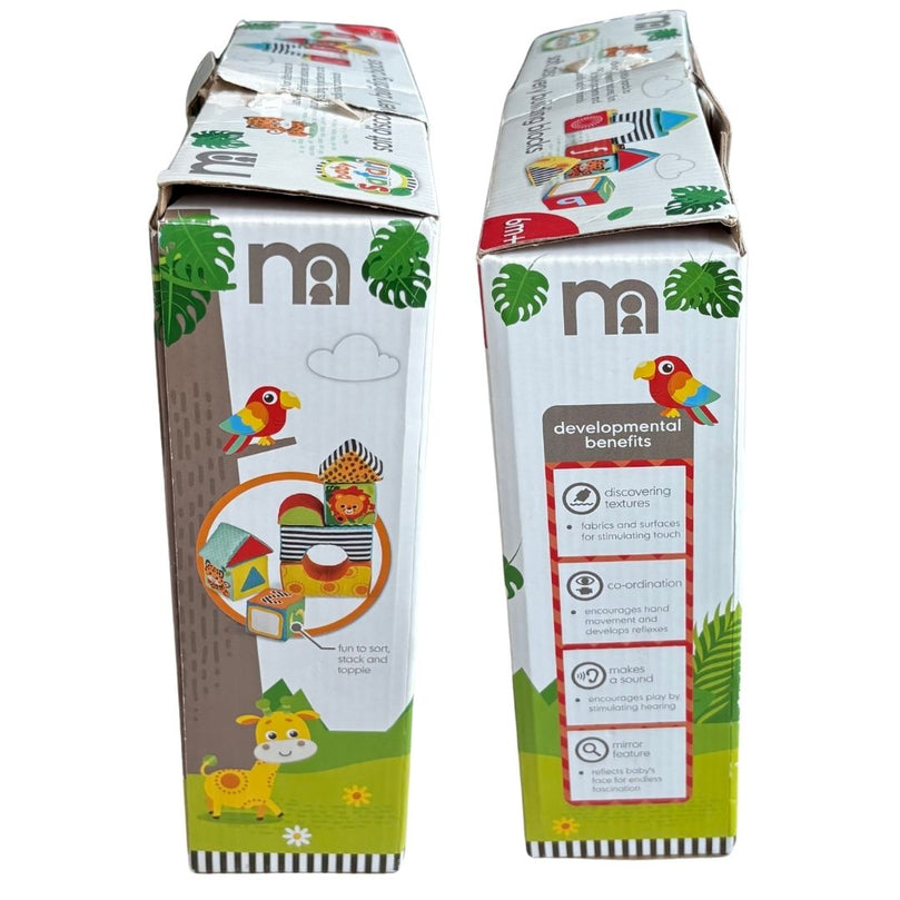 The Mothercare Baby Safari Building Blocks is 14 Shaped Fabric Blocks offer an engaging and interactive play experience for your little one. Featuring various textures, fun sounds, bright patterns, and friendly animal designs, these blocks are perfect for stacking, sorting, and toppling. Designed to help develop hand-eye coordination and problem-solving skills, the contrasting colors encourage visual development. A great toy for both fun and learning.