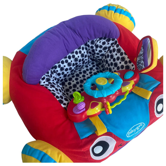 The Playgro Comfy plush car is packed with musical features designed to encourage motor skills and ignite imaginative play in your little one. Babies will delight in the sound of the horn beeping, the indicator clicking, and the rattling balls spinning. To add to the fun, there's even a side mirror that helps babies learn about reflections. This stationary car provides a secure space for play, making it perfect for little ones to practice sitting up or for older babies to enjoy comfortable and stylish playtime. What's more, you can easily detach and attach the musical driver toy to prams, strollers, or capsules, providing another exciting way to play while on the move.