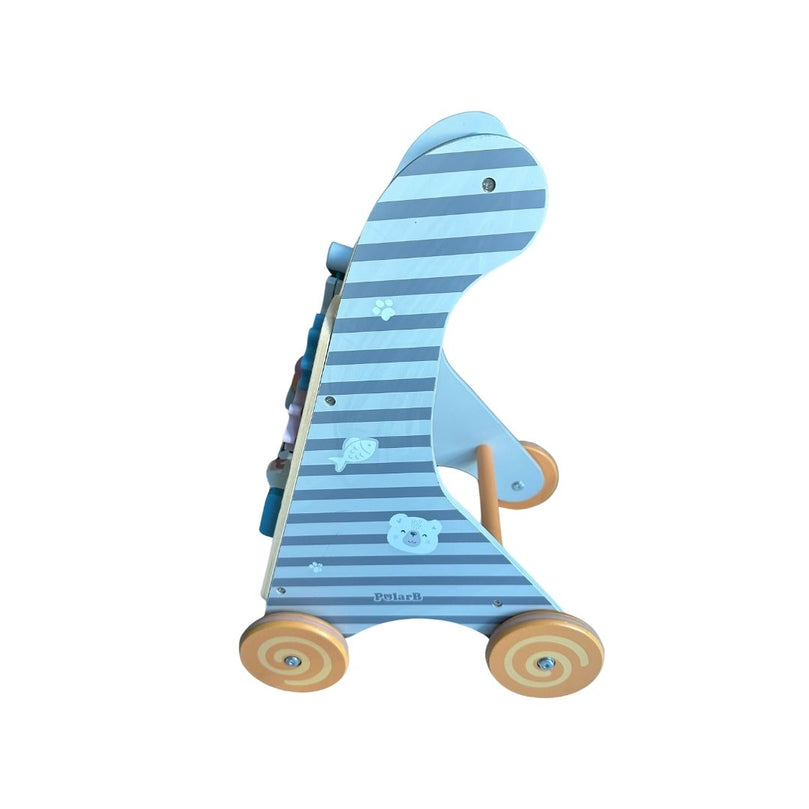 The PolarB Wooden Activity Baby Walker offers various activities like spinning gears, flip boards, wire beads, and a clock for toddlers to explore. It boosts creativity and imagination while enhancing motor and social skills. A fun and engaging activity center for early development.
