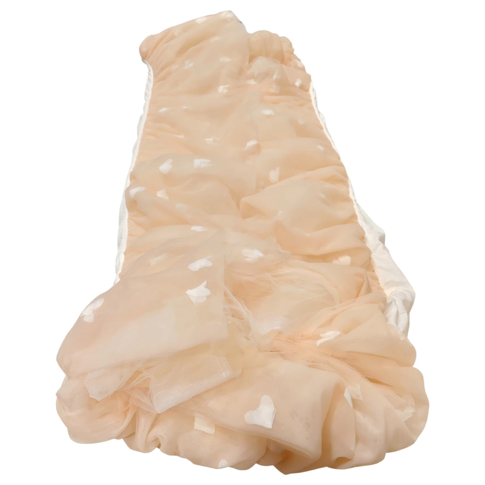 The Pottery Barn Kids Monique Lhuillier Ethereal Bed Skirt adds a touch of airy elegance to any child's bedroom, inspired by ballerinas’ voluminous tulle skirts. Made from 100% nylon with cotton decking, it features hand-embroidered 3-D flowers for a romantic, whimsical look. The four-sided design fits around the entire bed, creating a polished, dreamy finish. Easy to spot clean, this imported bed skirt is both stylish and practical for a beautiful bedroom update.