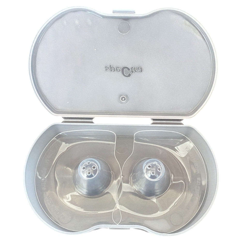 The Spectra Nipple Shield - Pack Of 2 is made from soft, thin, flexible, and BPA-free silicone, designed to provide comfort and protection for breastfeeding mothers. Ideal for flat or inverted nipples, sore or cracked nipples, nipple wounds, and helping with latch-on difficulties, it also aids mothers transitioning from bottle to breast and supports tongue-tied infants. This nipple shield offers gentle relief while protecting nipples from teething toddlers, ensuring a more comfortable and stress-free breastfeeding experience.
