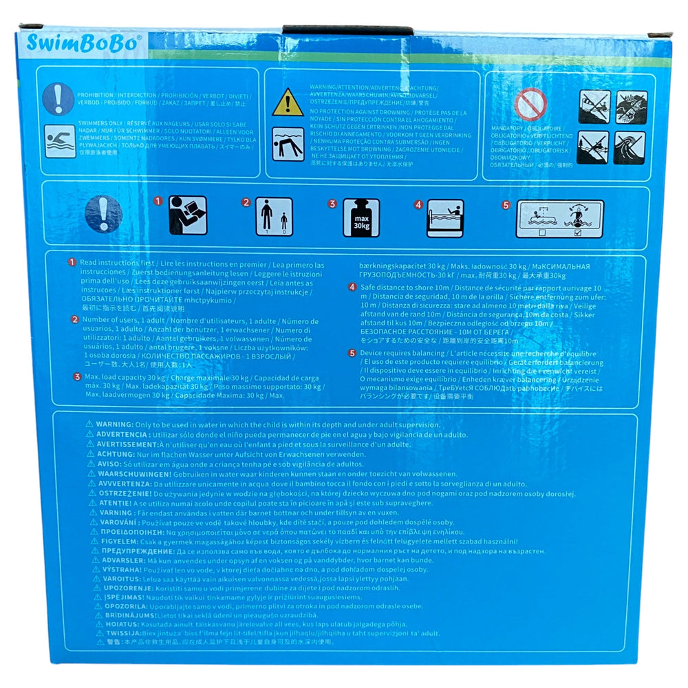 The Swim Bobo Inflatable Baby Swim Float with Sun Canopy is breathable, removable UPF50+ sun canopy to protect your baby’s skin from the sun. Designed to help babies learn to swim. The Swim Bobo Inflatable Baby Swim Float is leak-proof PVC that’s safe and non-toxic. With a double-layered air chamber, shoulder strap, and soft bottom support. Easy to inflate, deflate, store and is perfect for travel.
