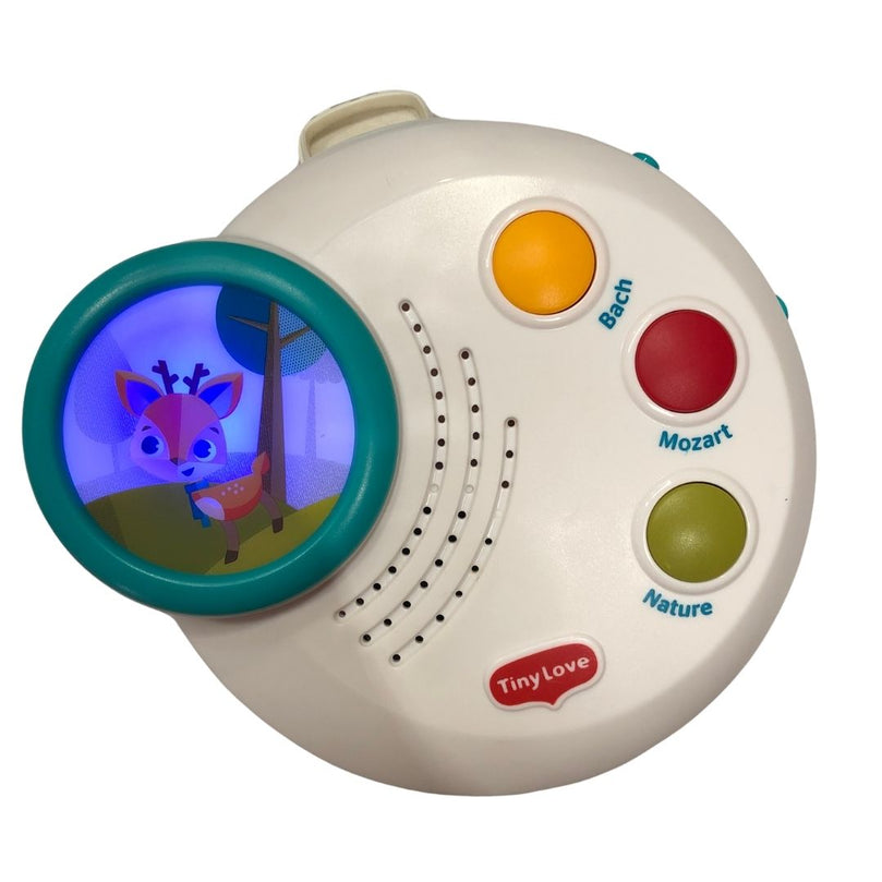TheTiny Love Into the Forest Classic Mobile featuring Florence the Fawn, Isaac the Bear, and Nikola the Badger. It helps soothe your baby with charming characters, soothing music, and a gentle nightlight. When it's time to remove the mobile, simply detach the arm. The mobile can then be transformed into a stand-alone music box. This versatile design provides both comfort and entertainment for your baby.
